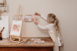 Sada na maľovanie prstami v krásnom prevedení umožní vášmu dieťaťu popustiť uzdu svojej kreativite. Sada obsahuje 4 jemné pastelové farby a predtlačené kartičky s potlačou motívov zo života na záhrade. Hranie s prstovými farbami stimuluje rozvoj jemnej motoriky aj kreativitu dieťaťa.